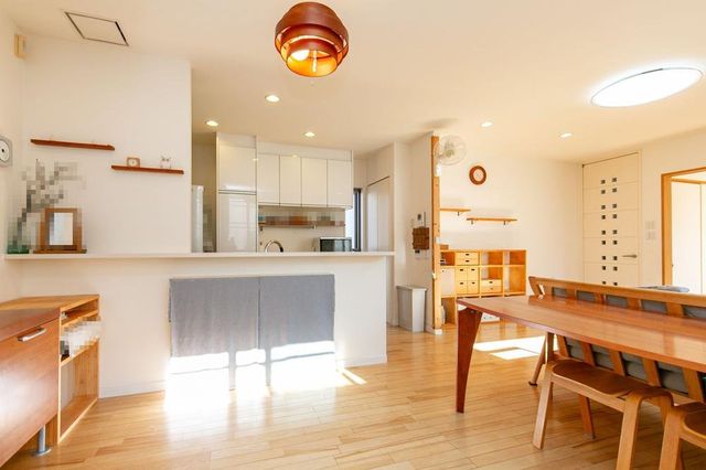 この物件の一番の特徴は、6帖大の吹抜けから太陽光の降り注ぐ開放感のある16帖のLDKです。