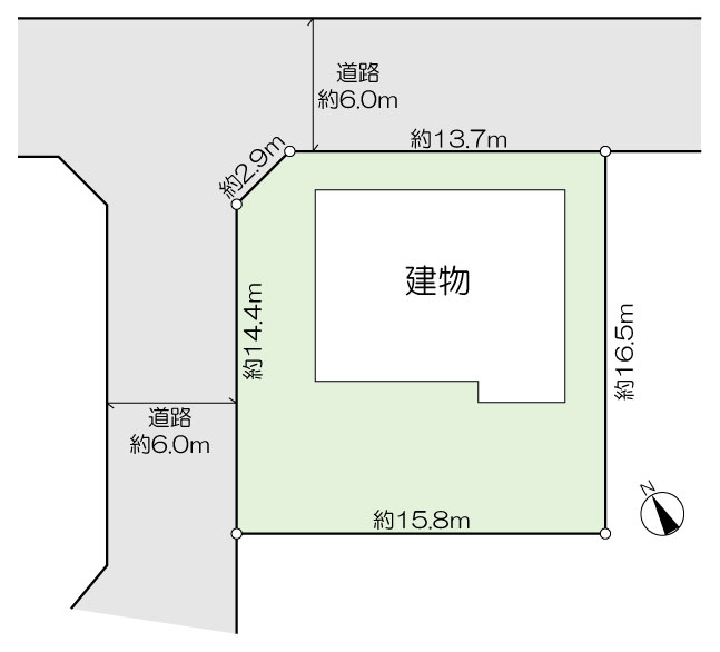 北側:幅員6m公道に13.7m接道