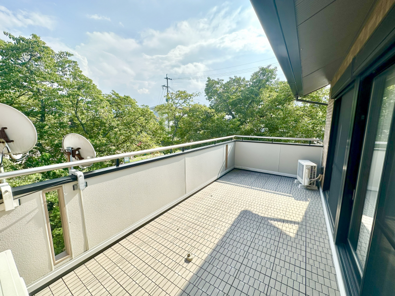 南向きでゆったりスペースのバルコニー♪3部屋から出入り可能の為季節や陽の光を感じられます。