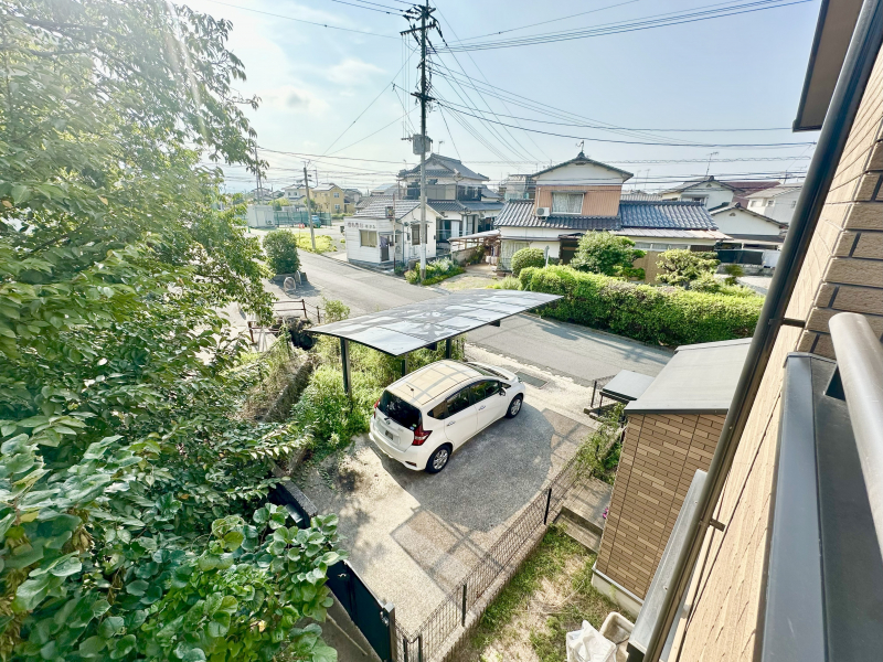 駐車場は背の高い屋根付き!キッチン横の勝手口とも近いです。