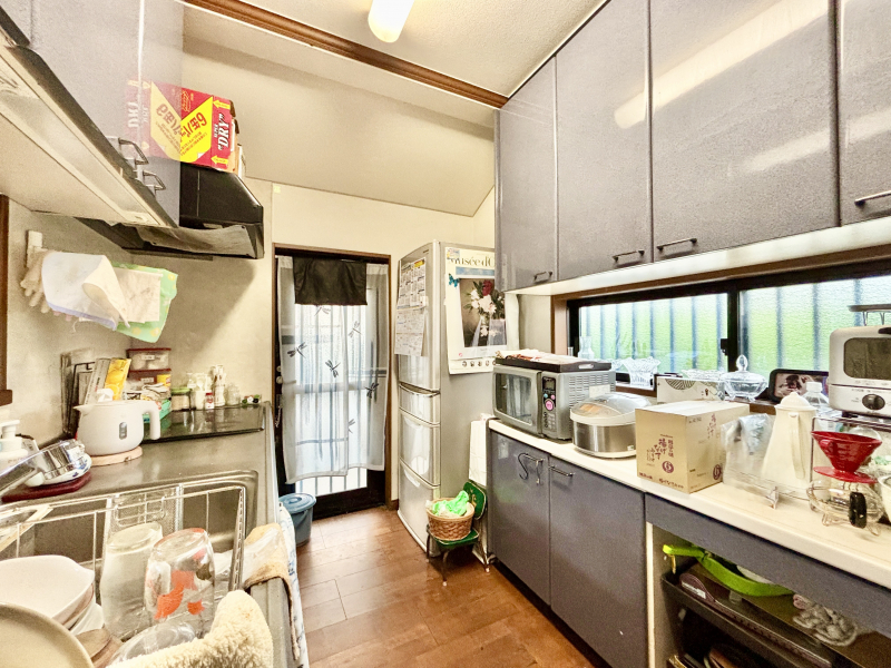 窓が多い為北側でも明るいキッチンです!勝手口を出た先はすぐに駐車場!