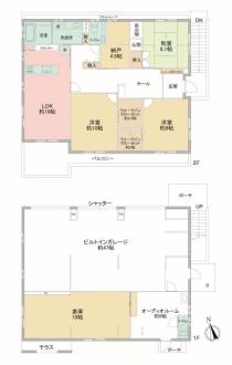 電気/上水道/下水道/追焚機能/IHクッキングヒータ/庭/浴室乾燥機/カウンタキッチン/モニタ付インターホン/食器洗浄乾燥機/洗髪洗面化粧台/システムキッチン/温水洗浄便座/トイレ2ヶ所/Wクロゼット/シャッター雨戸/オートバス/火災警報機(報知器)/浴室に窓/ビルトガレージ/シャッター車庫/全居室収納/納戸/LDK15畳以上/全居室6畳以上/和室/クローゼット/3口以上コンロ/グリル/ダウンライト/電動シャッター/省エネ給湯器/浴室暖房/駐車場3台分/日当たり良好/閑静な住宅街/24時間換気システム/緑豊かな住宅地/平坦地/土地100坪以上/前道6m以上/南西向き/通風良好/田園風景/2階建/庭10坪以上/小学校徒歩10分以内