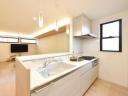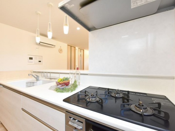 カウンターキッチン。吊戸棚がないため圧迫感がなく開放的なLDKです。