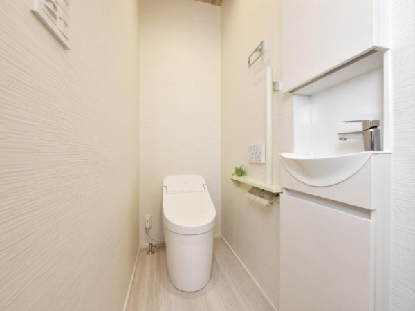 お手洗い(手洗い場別)。バリアフリー手すりも備え付けられております。