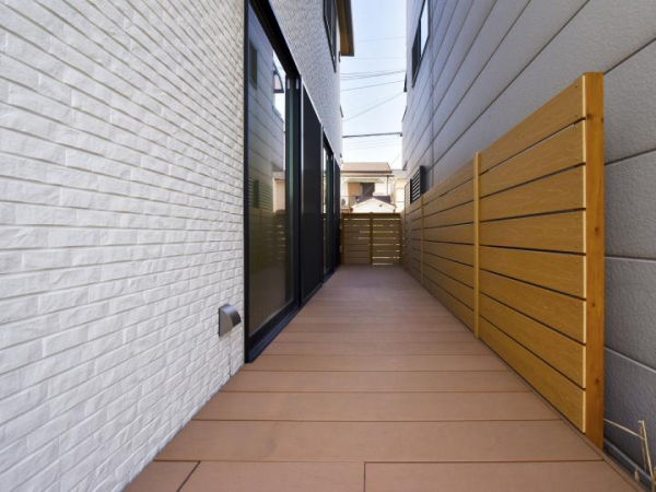 当ウッドデッキは目隠しがあるためプライバシーも確保され室内と屋外をつなぐ開放的なスペースです。