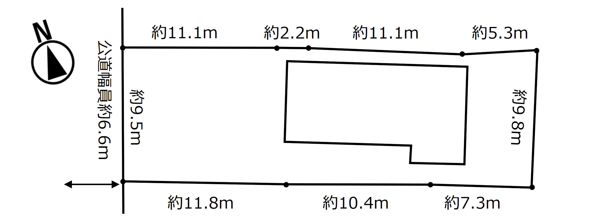 西側:幅員6.6m公道に9.5m接道