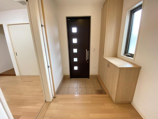 【玄関】シューズボックスが設置されています。カウンター部分は、お好きなインテリアを設置するなど、飾り棚として利用可能です。