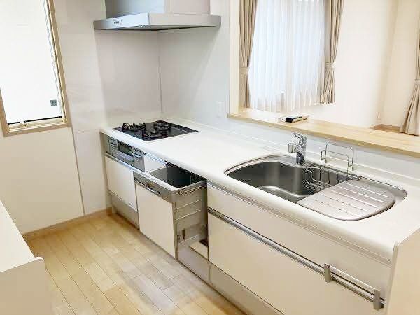 太陽光発電システム/カウンターキッチン/システムキッチン/浴室に窓/トイレ2箇所/モニタ付インターホン/LDK15畳以上/ウォークインクローゼット/電気/上水道/下水道/公営水道/本下水/側溝/プロパンガス/個別LPG/複層ガラス/長期優良住宅/建設住宅性能評価付/設計住宅性能評価付/駐車3台以上可能/南側道路面す/前道6m以上