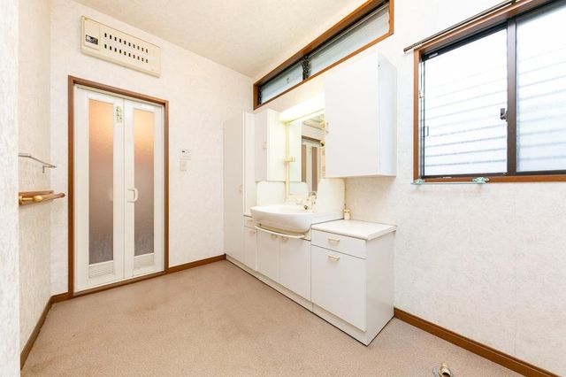 【洗面所】北側にハイサイドライト有。シャワー水栓付きの洗面化粧台が設置されています。/2024年9月撮影