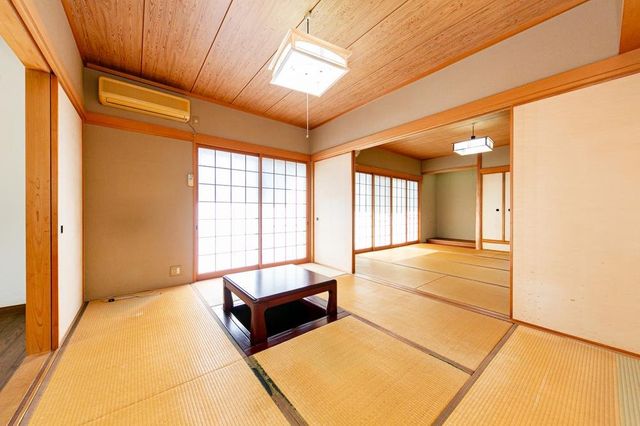 【1階和室/約9.8帖】2方向より出入り可能。吊押入・仏間・床の間付きです。/2024年9月撮影