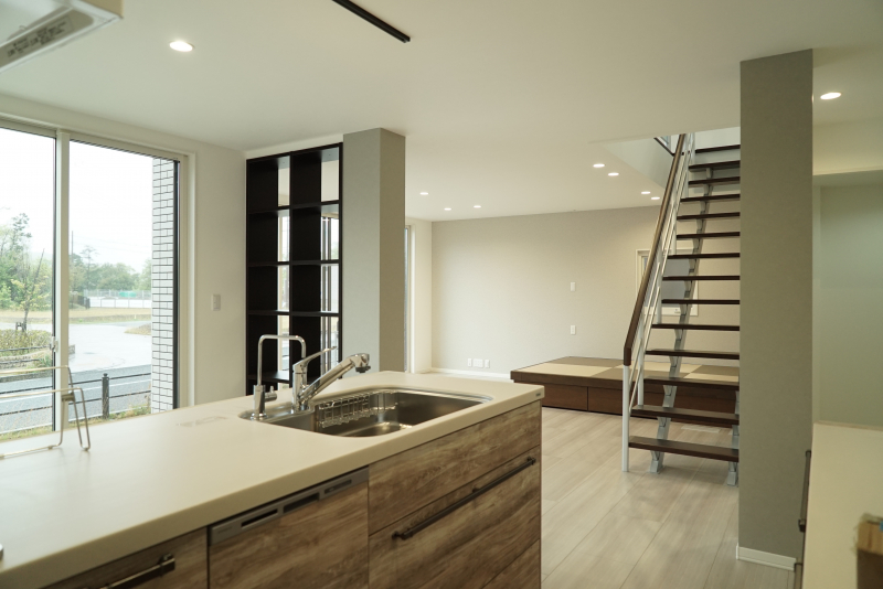 【リビング】 畳の空間はお子様の遊びスペースや来客スペースなど多目的に使用可能です。
