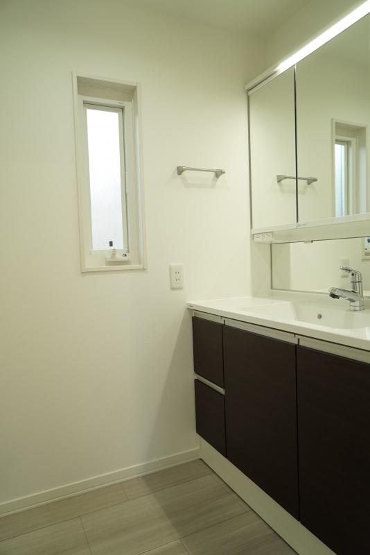 【洗面所】 使い勝手の良い三面鏡。洗面台下部には収納スペースがあり、収納場所に困ることがなさそうです