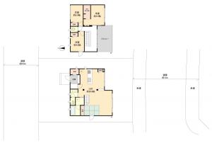 【間取り図面】 3LDKの間取り。2階洋室は全室収納付き。駐車2台可で突然の来客にも便利です。