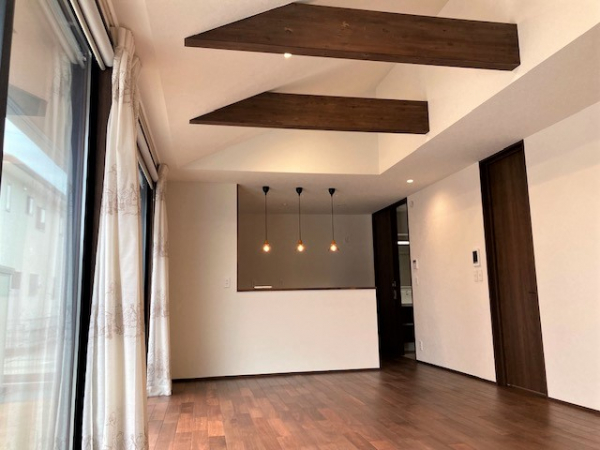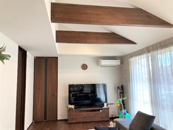 勾配天井を活かした現し梁