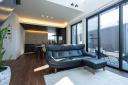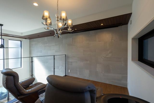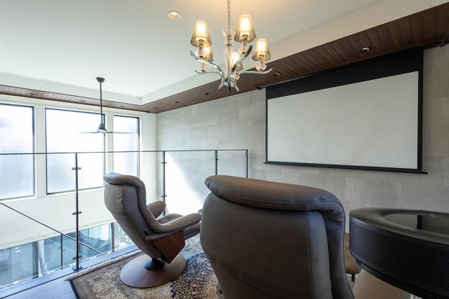(セカンドリビング約6.0帖)吹抜けからリビングとゆるやかに繋がります。80インチのスクリーン付き。