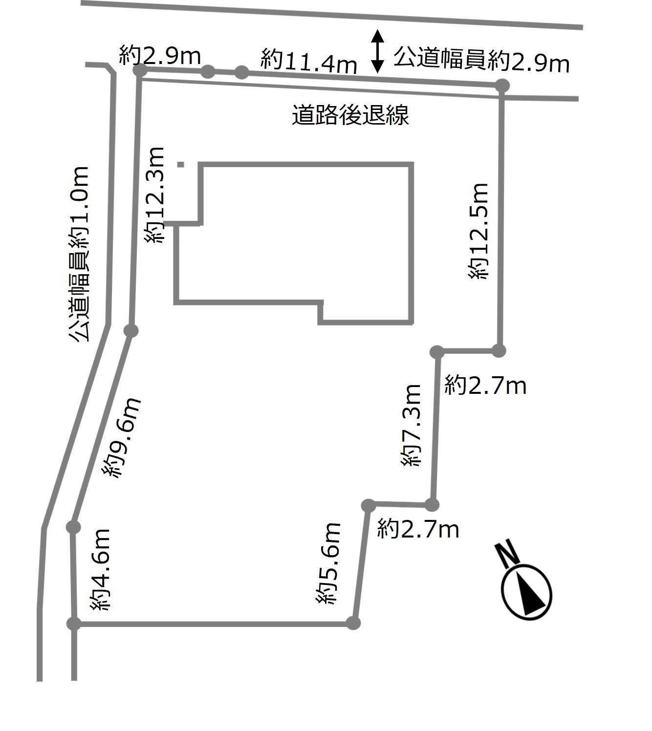 北側:幅員2.9m公道に15.8m接道