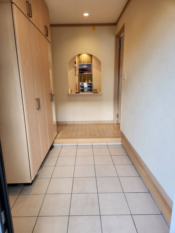 玄関横には収納棚が備わっています。ご家族の靴などしまえるので、玄関周りを綺麗に保てそうです。