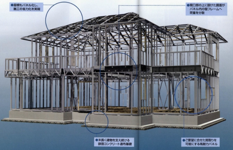 構造は軽量鉄骨造大型パネル工法で長持ちします