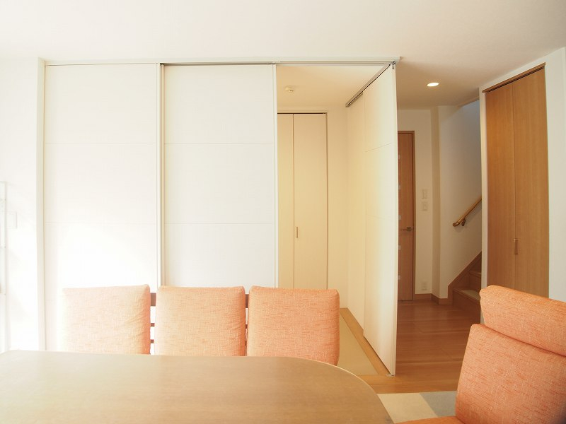 畳コーナーはスライディングウォールで仕切りがあり、開けると一層の広々リビングに早変わりします。