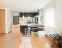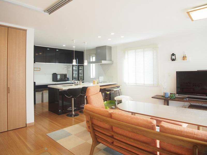 オープンタイプの対話型キッチンで奥様と家族のコミュニケーションの図れる空間設計です。