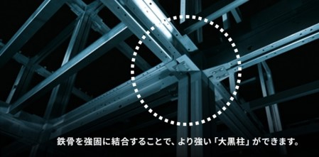・工場での生産により、現場では扱えない高電力の溶接で柱と柱を接合することによって、構造部材の強度や接合部の精度が高くなり、耐震性や耐久性が向上しています。