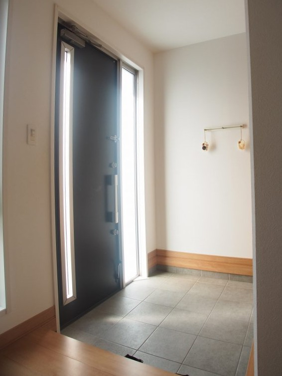 玄関ホール。300mm角のタイル敷で高級感を醸し出します。