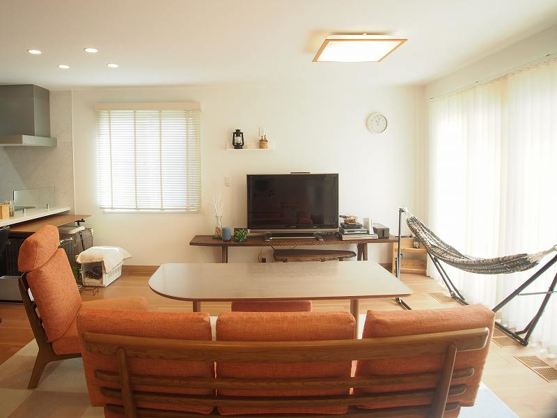 南側に大きな開口を設けたリビングルーム。家族の団欒を明るく演出します。
