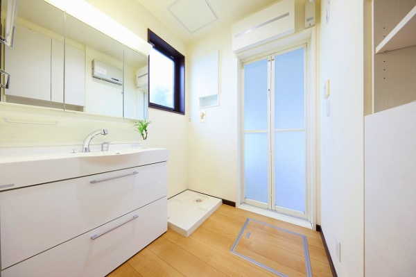 1階 洗面室/3面鏡のシャワー付き洗面化粧台