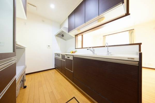 1階 対面式システムキッチン/IH3口コンロ/食洗機/浄水機/カップボード