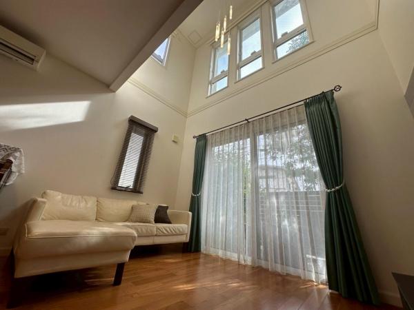 - 三井ホーム施工のスムストック住宅。瀟洒な外観と外気の影響を受けにくいDSパネル採用による快適な室内空間♪二階のファミリールームは勾配天井♪天窓から注ぐ光による明るさと気持ちの良い大きな空間が「売り」♪緑も育って目線を遮るウッドデッキも見どころです。